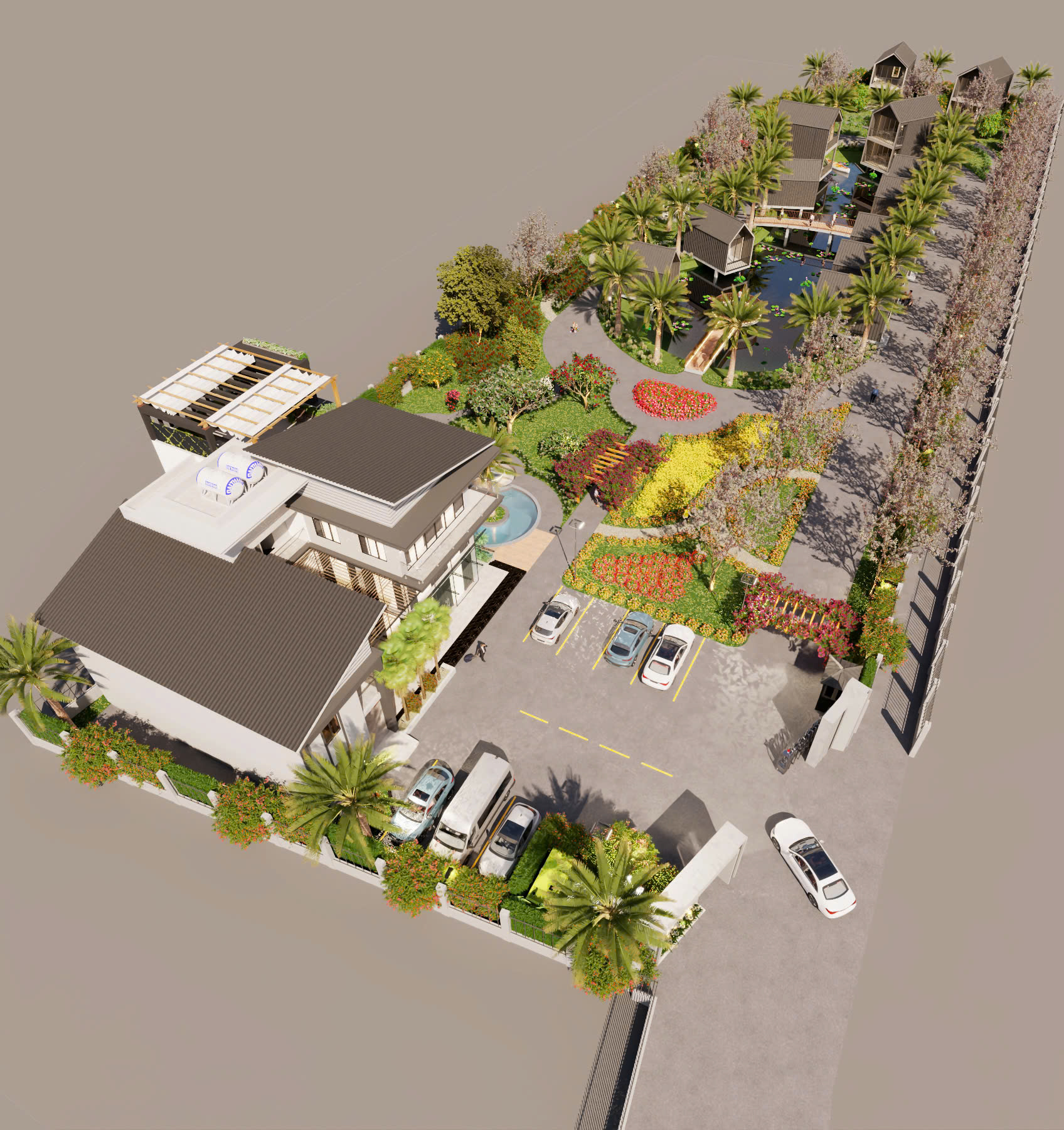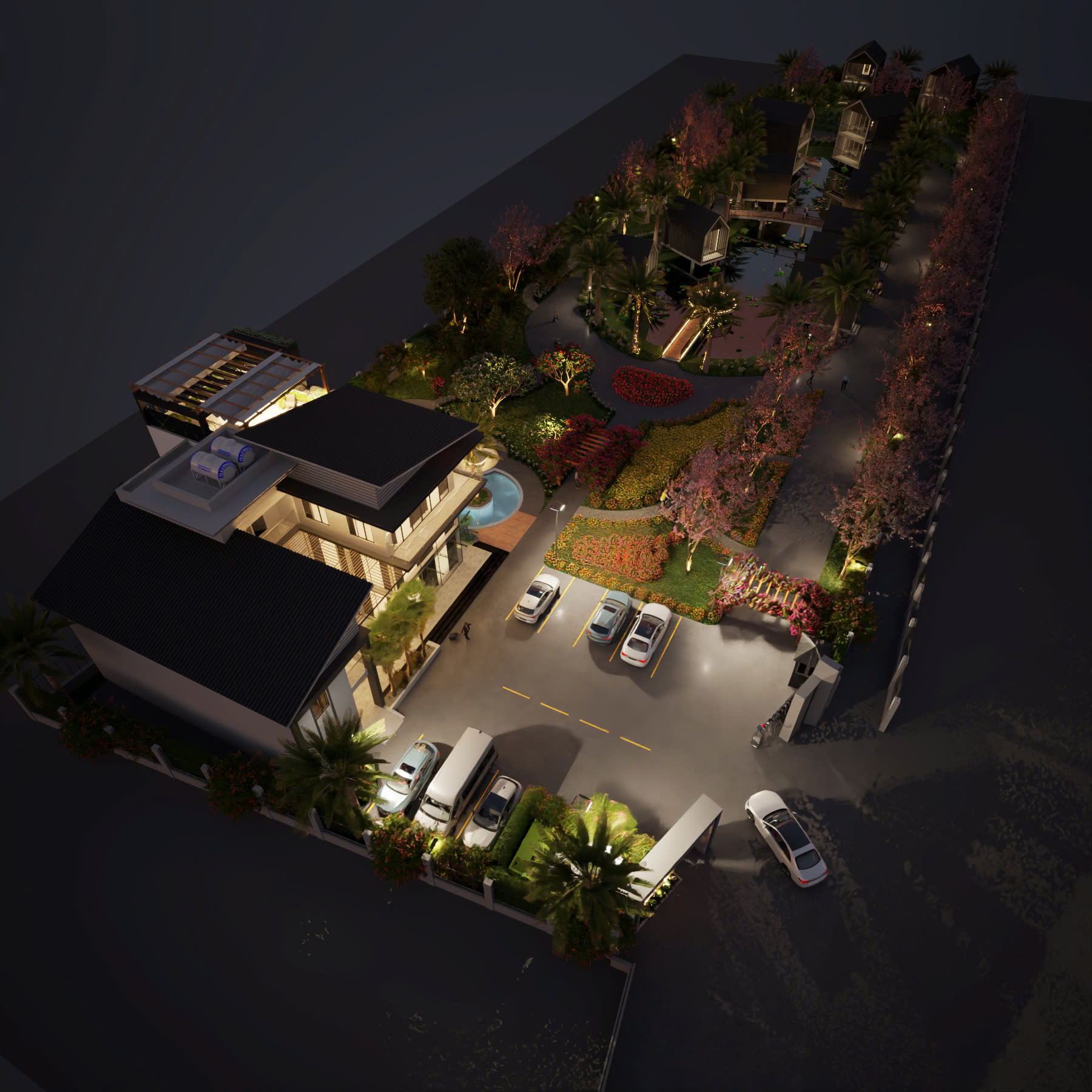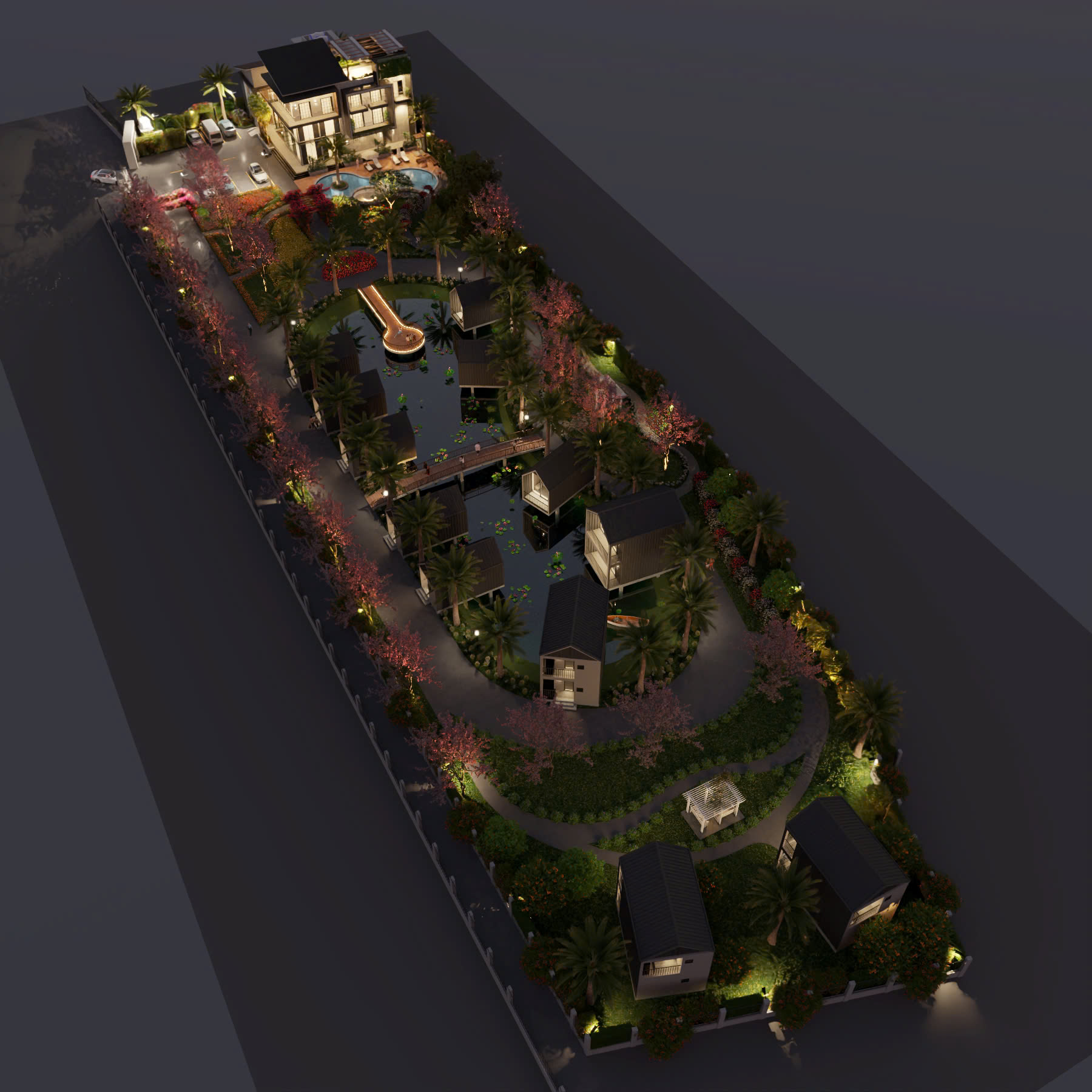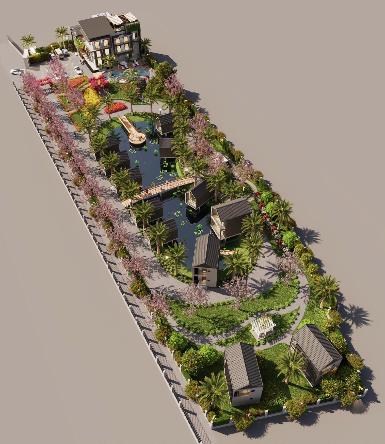 KHU NGHỈ DƯỠNG 27 Tháng 8, 2025 *Địa điểm: Thủ đô Viên Chăn-CHDCND Lào *Diện tích: ~1 Hecta. *Hạng mục: Quy hoạch thiết kế(Hạ tầng, Kiến trúc, Nội Thất)